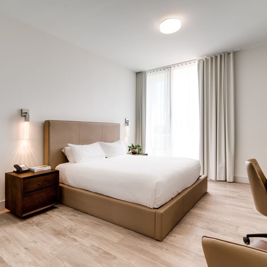 Experience our dynamic Studio Suite with one King Bed featuring a modern European-inspired design. Step onto your private balcony and bask in the warmth of the sun.